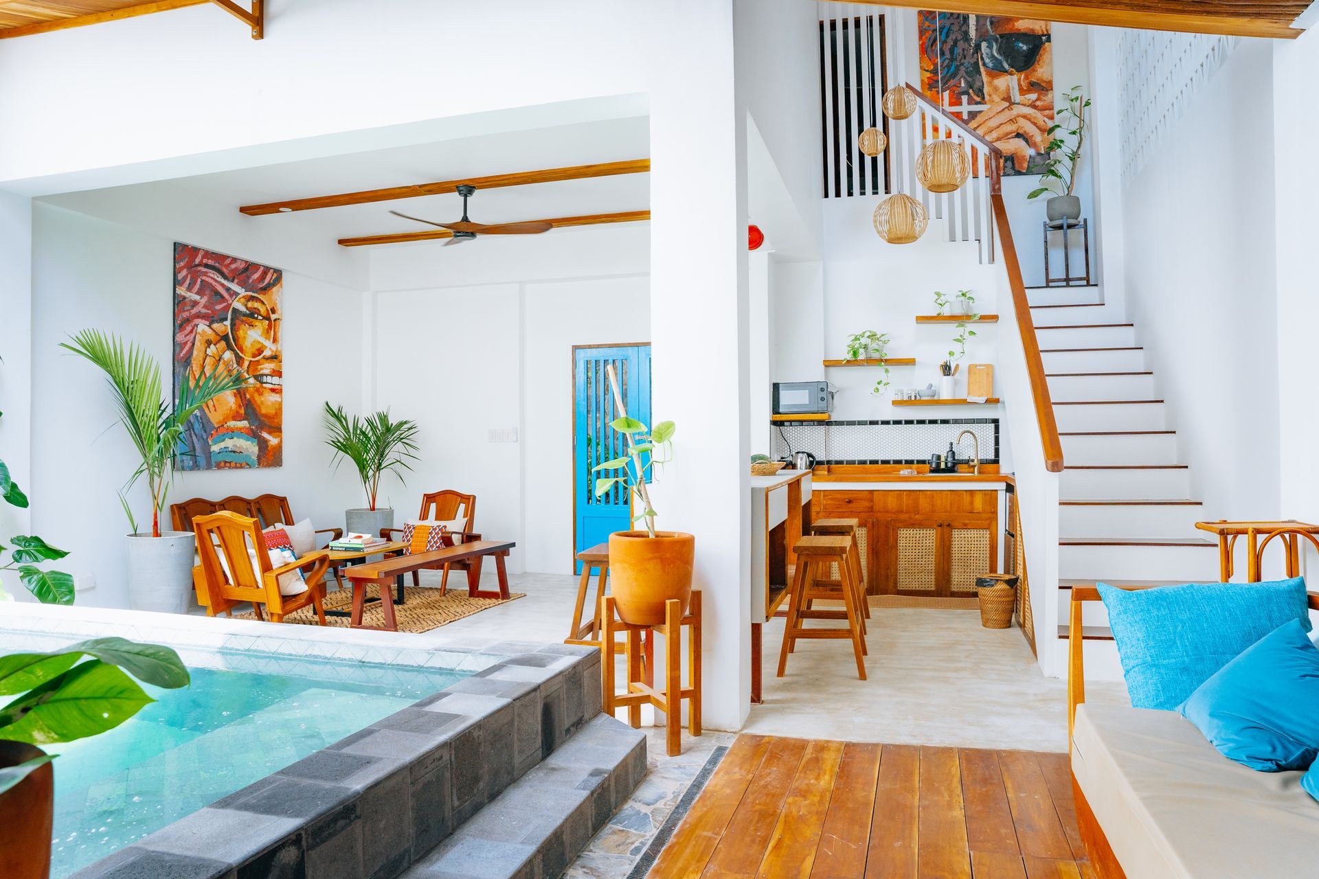 Perfect for couples, small families, or friends, Payapa Villa offers a beautifully appointed king-bedroom, a stylish living area with a cozy sofa, and a fully equipped kitchenette for light cooking. Large sliding doors fill the space with natural light and open into your private courtyard, creating the ideal indoor-outdoor flow.